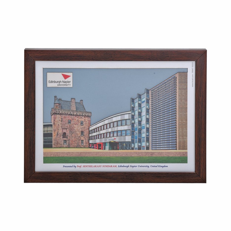 Architectural Art Frames with laser-cut building backgrounds add depth and dimension. They turn flat prints into interesting keepsakes. These are ideal for organisation and university group photos that commemorate the year or batch from a prestigious institution.